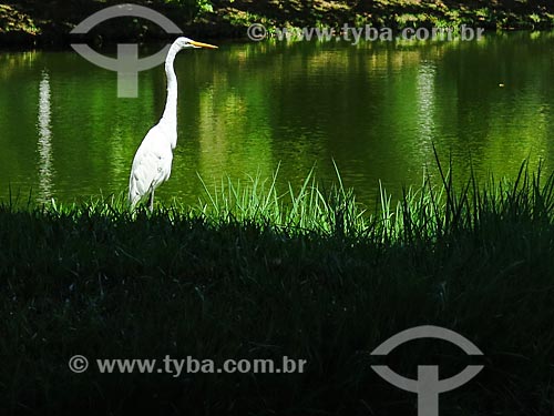 Great egret (Ardea alba) on the banks of lagoon - Italy Square - Porto Alegre city - Rio Grande do Sul state (RS) - Brazil