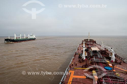 Oil tanker and bulk carrier in the channel of Mar del Plata - Mar Del Plata city - Buenos Aires - Argentina