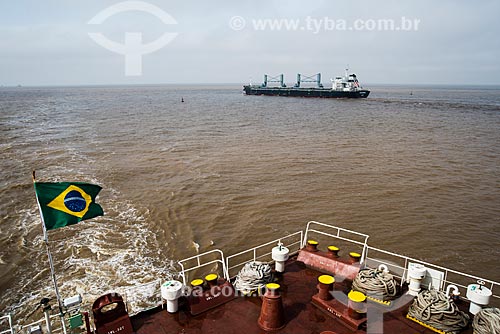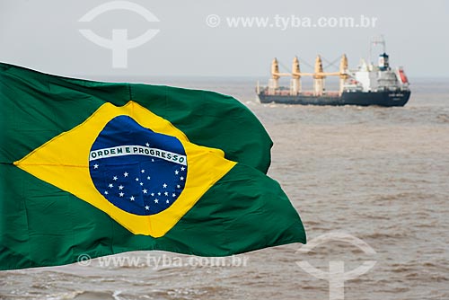 Brazilian flag of merchant ship and bulk carrier in the channel of Mar del Plata - Mar Del Plata city - Buenos Aires - Argentina