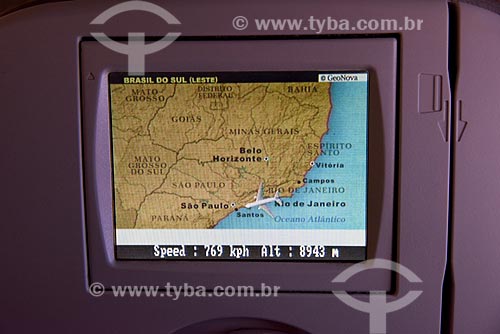 •  Detail of map showing the airplane location during the flight between Rio de Janeiro and Campinas  - Rio de Janeiro city - Rio de Janeiro state (RJ) - Brazil