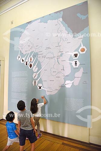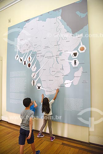Children interacting with exhibition Africa - past and present - on exhibit - National Museum - old Sao Cristovao Palace - Rio de Janeiro city - Rio de Janeiro state (RJ) - Brazil