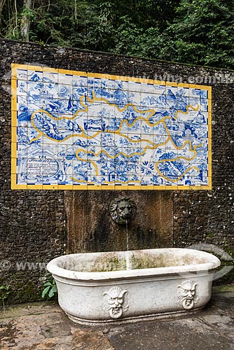 Fountain with panel of tiles with the map of the Tijuca Forest (1946) near to Cascatinha Taunay (Cascade Taunay) - Rio de Janeiro city - Rio de Janeiro state (RJ) - Brazil