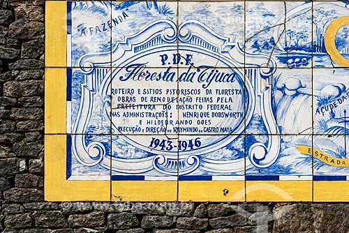 Detail of panel of tiles with the map of the Tijuca Forest (1946) near to Cascatinha Taunay (Cascade Taunay) - Rio de Janeiro city - Rio de Janeiro state (RJ) - Brazil