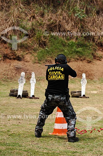 •  Subject: Detail of Civil Police officer (Brazil) aiming shotgun at targets during shooting practice / Place: Civil Police (Brazil) Shooting practice center - Rio de Janeiro city - Rio de Janeiro state / Date: 09/2008