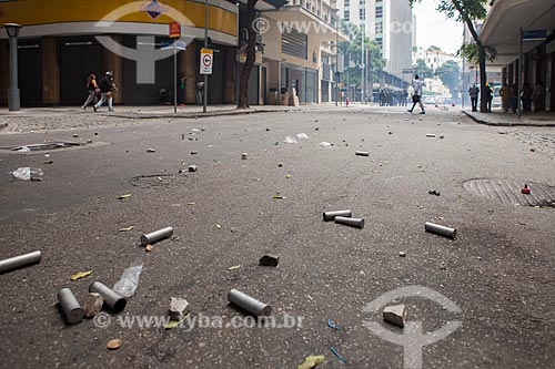 Cartridges and stones - Assembleia Street after manifestation opposite to Legislative Assembly of the State of Rio de Janeiro (ALERJ) - Rio de Janeiro city - Rio de Janeiro state (RJ) - Brazil