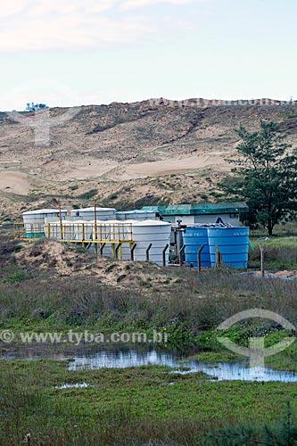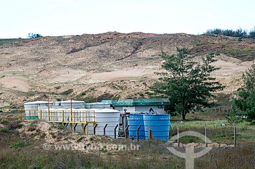 Water tanks of the Catarinense Water and Sanitation Company (CASAN) that supplies the Saint Martha Lighthouse village - Laguna city - Santa Catarina state (SC) - Brazil