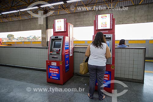 Woman using cash machine - Pavuna Station of Rio Subway - Rio de Janeiro city - Rio de Janeiro state (RJ) - Brazil