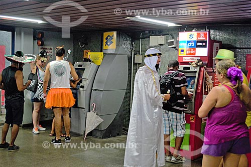 Revelers - queue to cash machine of the Flamengo Station of Rio Subway - Rio de Janeiro city - Rio de Janeiro state (RJ) - Brazil