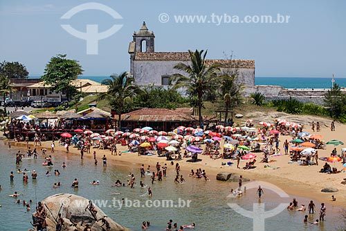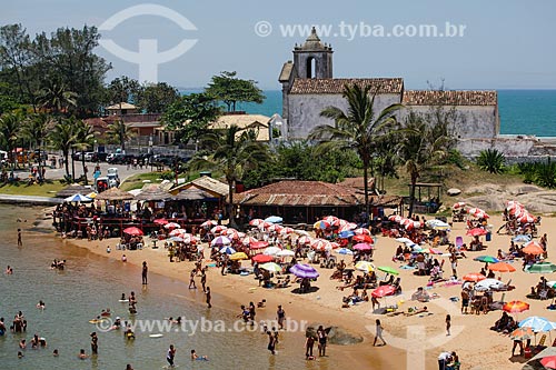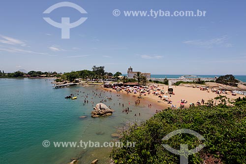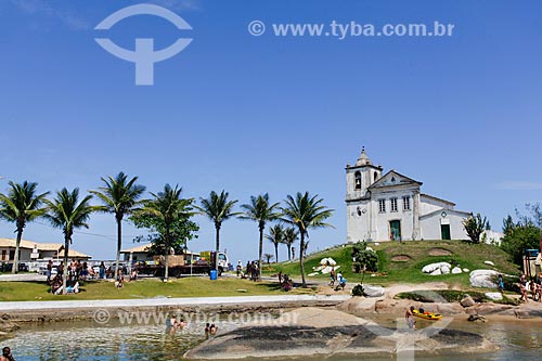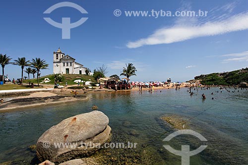 •  Bathers - Prainha Beach with the Sao Joao Batista Chapel (1619) in the background  - Casimiro de Abreu city - Rio de Janeiro state (RJ) - Brazil