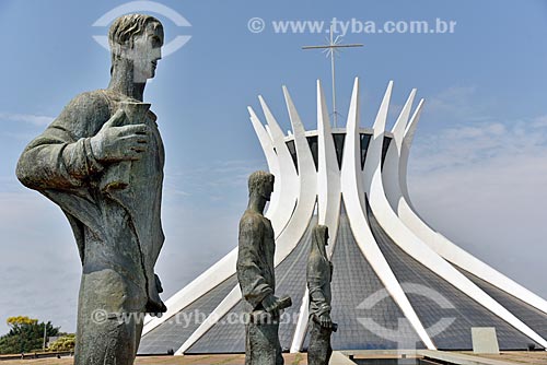 Os Evangelistas (The Evangelists) sculptures with the Metropolitan Cathedral of Our Lady of Aparecida (1958) - also known as Cathedral of Brasilia - Brasilia city - Distrito Federal (Federal District) (DF) - Brazil