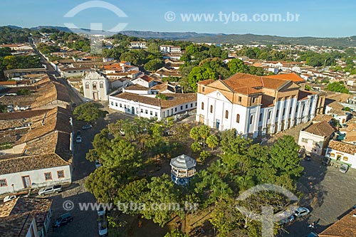 Picture taken with drone of the Bandstand Square with the Saint Anne Mother Church (1743), Conde dos Arcos Palace - to the right - with the Our Lady of the Good Death Church (1779) in the background - Goias city - Goias state (GO) - Brazil