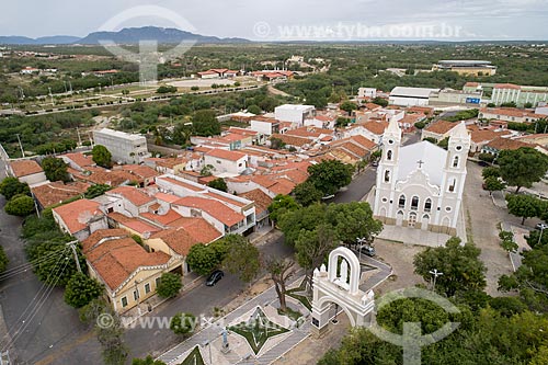 Picture taken with drone of the Cathedral of Saint Anne (1785) and Arc de Triomphe - Monsenhor Walfredo Gurgel Square - Caico city - Rio Grande do Norte state (RN) - Brazil