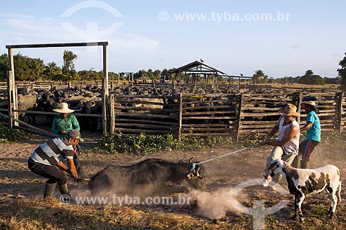Cattles herding lassoing buffalo - Sanjo Farm - Salvaterra city - Para state (PA) - Brazil