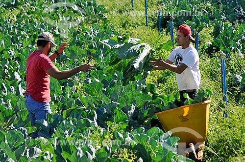 •  Detail of rural workers harvesting cauliflower  - Neves Paulista city - Sao Paulo state (SP) - Brazil
