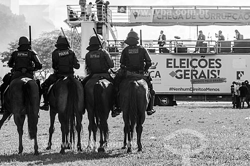 Military Police Cavalry protecting the National Congress during demonstration against the government of Michel Temer - Esplanade of Ministries - Brasilia city - Distrito Federal (Federal District) (DF) - Brazil