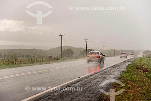 Car - snippet of the CE-293 highway during the rain - Missao Velha city - Ceara state (CE) - Brazil