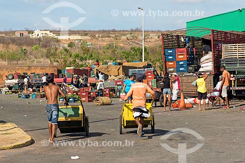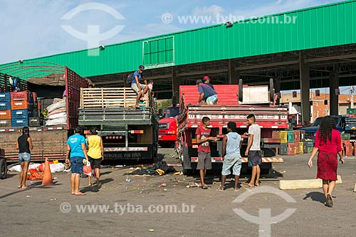 •  Trucks unloading food on the Centrals of Supply of Ceara State S.A. - CEASA do Cariri  - Barbalha city - Ceara state (CE) - Brazil