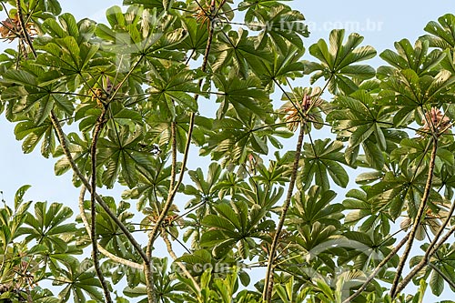 Cecropia leafs - Guapiacu Ecological Reserve - Cachoeiras de Macacu city - Rio de Janeiro state (RJ) - Brazil