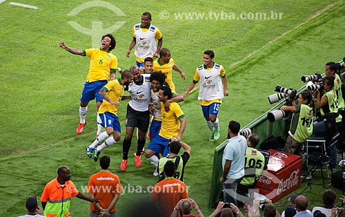 •  Subject: Players celebrating the goal from Fred in the friendly match between Brazil x England in the Journalist Mario Filho Stadium - also known as Maracana / Place: Maracana neighborhood - Rio de Janeiro city - Rio de Janeiro state (RJ) - Brazil /