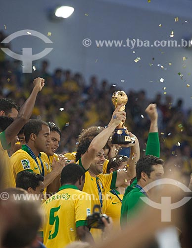 Subject: Players celebrating the victory over Spain in final match of Confederations Cups at Journalist Mario Filho Stadium - also known as Maracana / Place: Maracana neighborhood - Rio de Janeiro city - Rio de Janeiro state (RJ) - Brazil / Date: 06