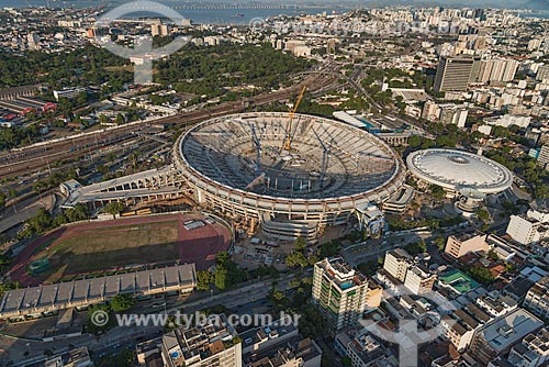 Reform Journalist Mario Filho Stadium also known as Maracana - for the World Cup 2014 - Athletics stadium Celio de Barros on the left and Presidente Castelo Branco Avenue in the background - Rio de Janeiro city - Rio de Janeiro state (RJ) - Brazil