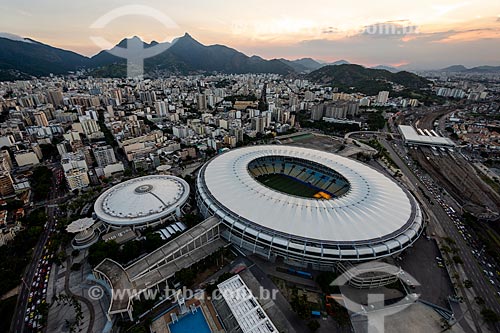 Aerial photo of the Journalist Mario Filho Stadium (1950) - also known as Maracana during the sunset - Rio de Janeiro city - Rio de Janeiro state (RJ) - Brazil