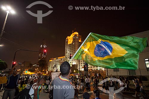 •  Subject: Demonstration of the Free Pass Movement in the Presidente Vargas Avenue with the Duque de Caxias Palace (1941) and clock tower of Central do Brazil in the background / Place: City center neighborhood - Rio de Janeiro city - Rio de Janeiro s