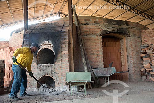 •  Worker putting tiles of pottery oven  - Nazaria city - Piaui state (PI) - Brazil