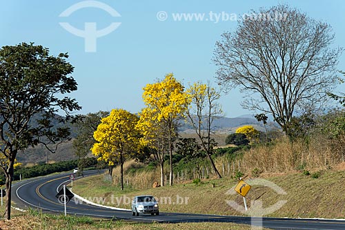 View of Yellow Ipe Trees on the banks of the Newton Penido Highway (MG-050) - Capitolio city - Minas Gerais state (MG) - Brazil