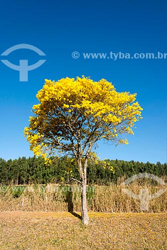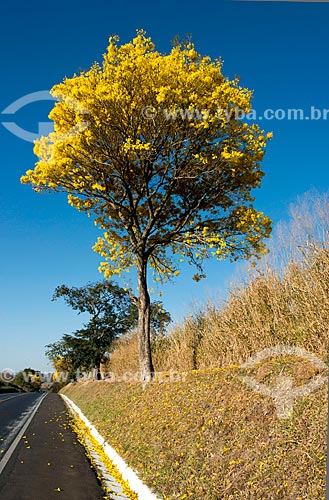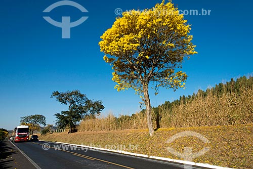 View of Yellow Ipe Tree on the banks of the Newton Penido Highway (MG-050) - Capitolio city - Minas Gerais state (MG) - Brazil