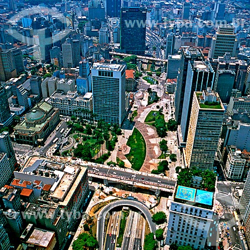 •  Top view of Ramos de Azevedo Square, Cha Viaduct (Tea Viaduct) - to the left - and the Municipal Theater of Sao Paulo (1911)  - Sao Paulo city - Sao Paulo state (SP) - Brazil