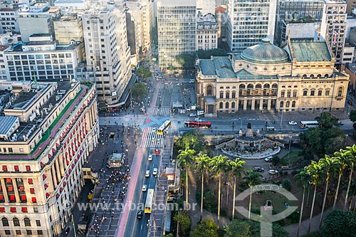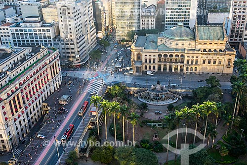 Top view of Ramos de Azevedo Square, Cha Viaduct (Tea Viaduct) - to the left - and the Municipal Theater of Sao Paulo (1911) - Sao Paulo city - Sao Paulo state (SP) - Brazil