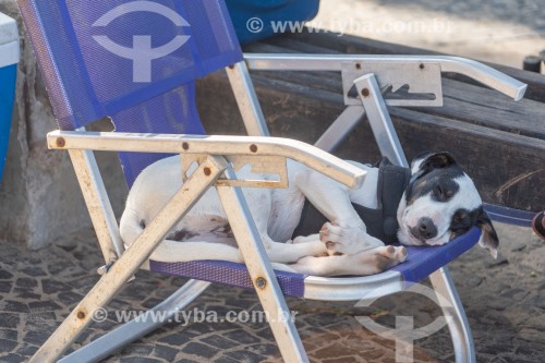 Dog sleeping in beach chair - Arpoador Beach - Rio de Janeiro city - Rio de Janeiro state (RJ) - Brazil