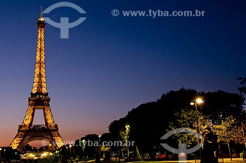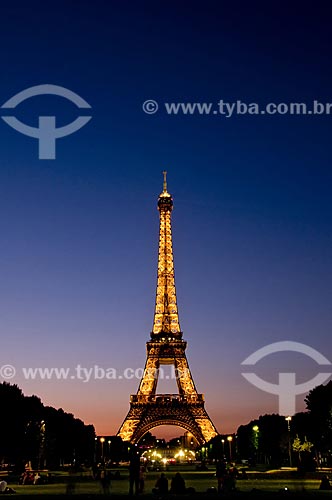 •  Subject: Eiffel Tower (1889) view of the Champ de Mars (Field of Mars) at nightfall / Place: Paris - France - Europe / Date: 12/2008