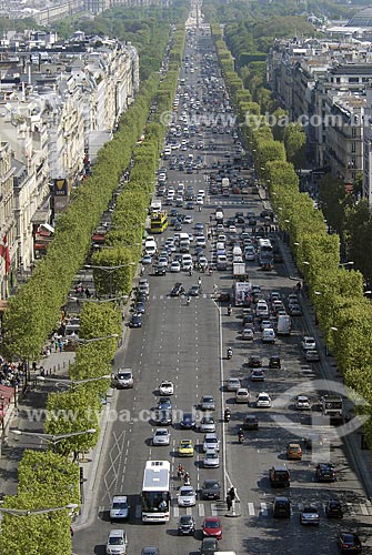 •  Subject: Champs Elysees Avenue (Avenue des Champs-Élysées) with Triumphal Arche (Arc de Triomphe) in background / Place: Paris - France - Europe / Date: 01/2009
