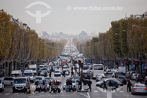 View of Avenue des Champs-Élysées from Arc de Triomphe with the Musée du Louvre (Louvre Museum) in the background - Paris - Paris department - France