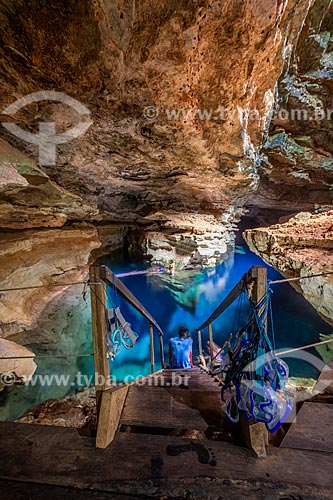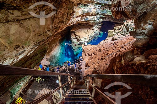 Tourists at Azul Well (Blue Well) - Nova Redencao city - Bahia state (BA) - Brazil