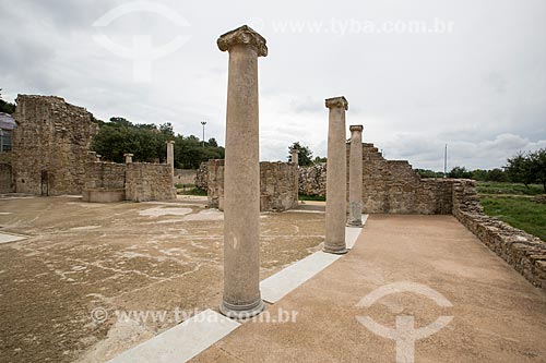 Ruins of courtyard - entrance of the Villa Romana del Casale - old palace building IV century - Piazza Armerina city - Enna province - Italy