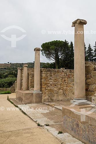 •  Ruins of courtyard - entrance of the Villa Romana del Casale - old palace building IV century  - Piazza Armerina city - Enna province - Italy