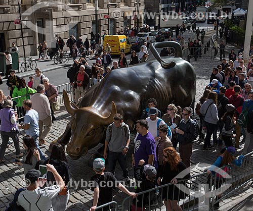 Tourists near of Charging Bull (1989) - also known as Wall Street Bull - New York city - New York - United States of America