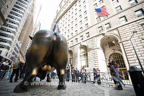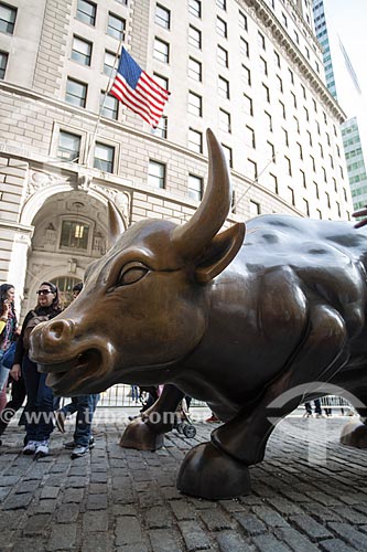 •  Tourists near of Charging Bull (1989) - also known as Wall Street Bull  - New York city - New York - United States of America