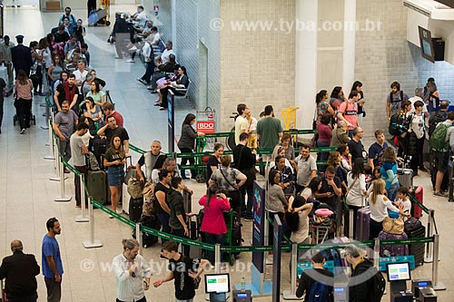 Queue to check-in of GOL - Intelligent Airlines - and Avianca - Santos Dumont Airport hall during delays and cancellations caused by fog - Rio de Janeiro city - Rio de Janeiro state (RJ) - Brazil