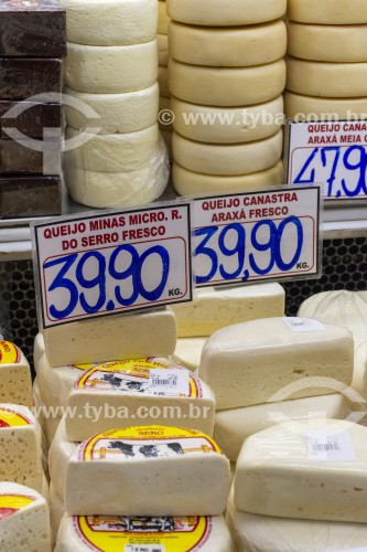 Different types of artisanal cheese for sale at the Belo Horizonte Central Market (1929) - Belo Horizonte city - Minas Gerais state (MG) - Brazil
