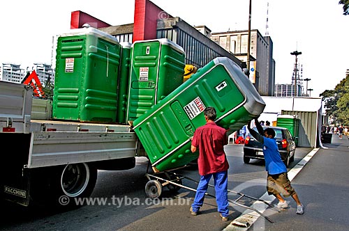 •  Subject: Men carrying chemical toilet on Paulista Avenue / Place: Sao Paulo city - Sao Paulo state (SP) - Brazil / Date: 07/2004