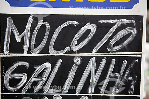 •  Detail of plaque that says: Mocoto, Chicken  - Rio de Janeiro city - Rio de Janeiro state (RJ) - Brazil