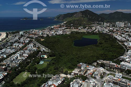 • Aerial view of the Recreio dos Bandeirantes neighborhood with Taxinhas Lake and Chico Mendes Municipal Natural Park  - Rio de Janeiro city - Rio de Janeiro state (RJ) - Brazil