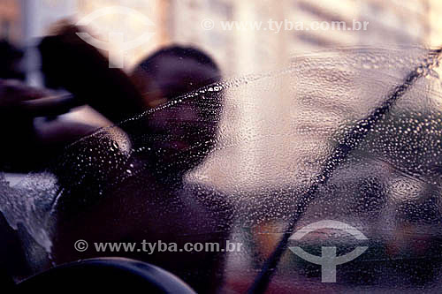 •  Street boy boy washing a car window during the red traffic light  - Brazil