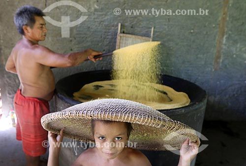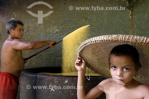 Riverine and your son producing flour - Bom Jesus Riparian Community - Uacari Sustainable Development Reserve - Carauari city - Amazonas state (AM) - Brazil