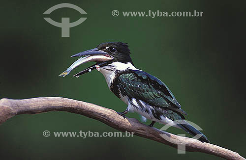 (Chloroceryle amazona) - Amazon kingfisher swallowing fish Mamiraua Sustainable Development Reserve - Amazonas State - Brazil