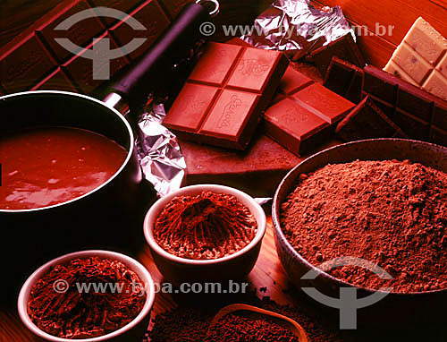 Chocolate in syrup, in bars and powdered